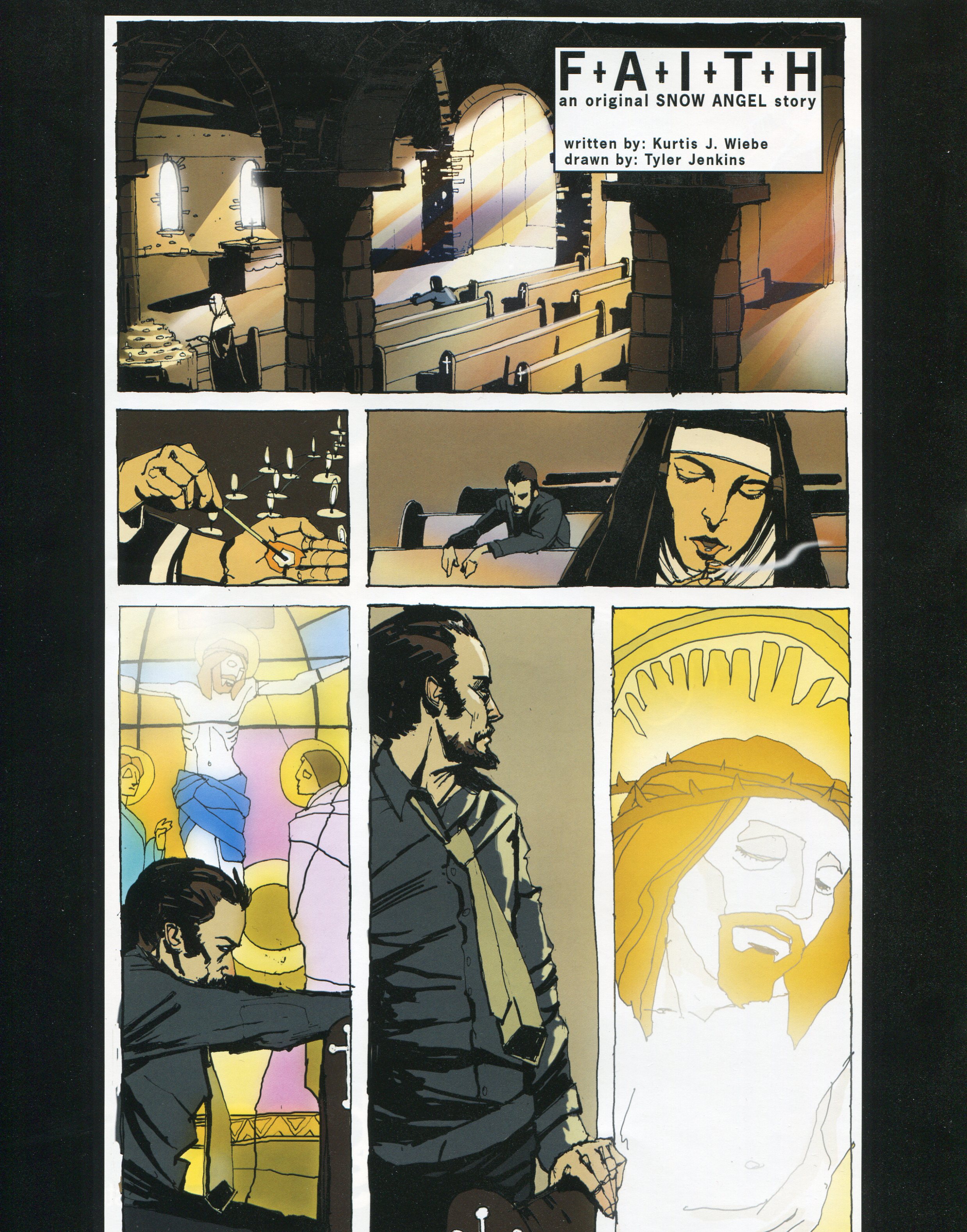At any rate, one of the first comic shorts in the magazine’s first issue was Faith, which is pictured here. We were debuting the magazine at the Calgary Entertainment Expo a full year after the release of Snow Angel (this was 2009, I believe) and we wanted to have some sort of Snow Angel content for the people who bought the comic the previous year. This is what came of it, a 5 page short telling a bit of an origin story of The Caesar. If you haven’t read it yet, you can purchase it on Amazon, or, even better read it for free here: http://www.tylerjenkins.ca/?gallery=snow-angel (sub-categories beneath Snow Angel show Issues 2, 3, and 4.)