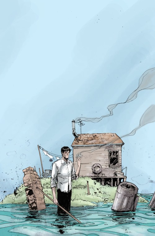 Panel 1. Well, this is it Riley. I’ve enjoyed this series a lot and it’s been an amazing experience working with you on it. I’m sad this is the end, but we’ve a lot to be proud about. Thanks for taking a chance on me as a writer and giving me the in that has led to so many wicked opportunities. I appreciate it more than you know. So, here we go. The final scene we talked about since the very first time we sat down and plotted out Green Wake. Feel free to frame it however you want and to lay it out however you want. These are mere suggestions, but I suspect you know exactly how you want it to be.